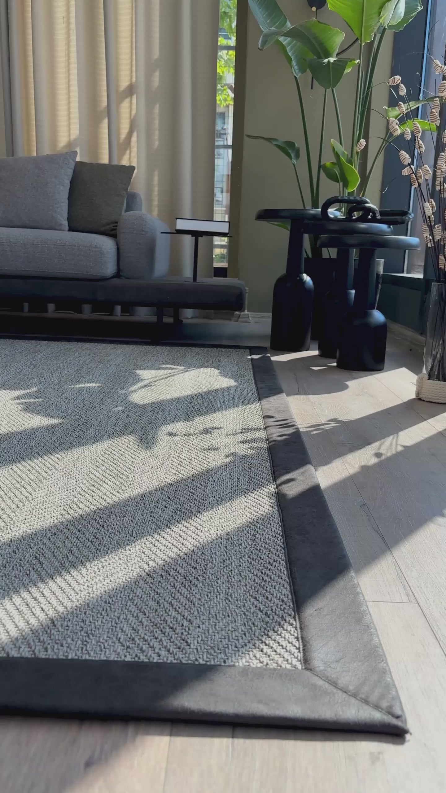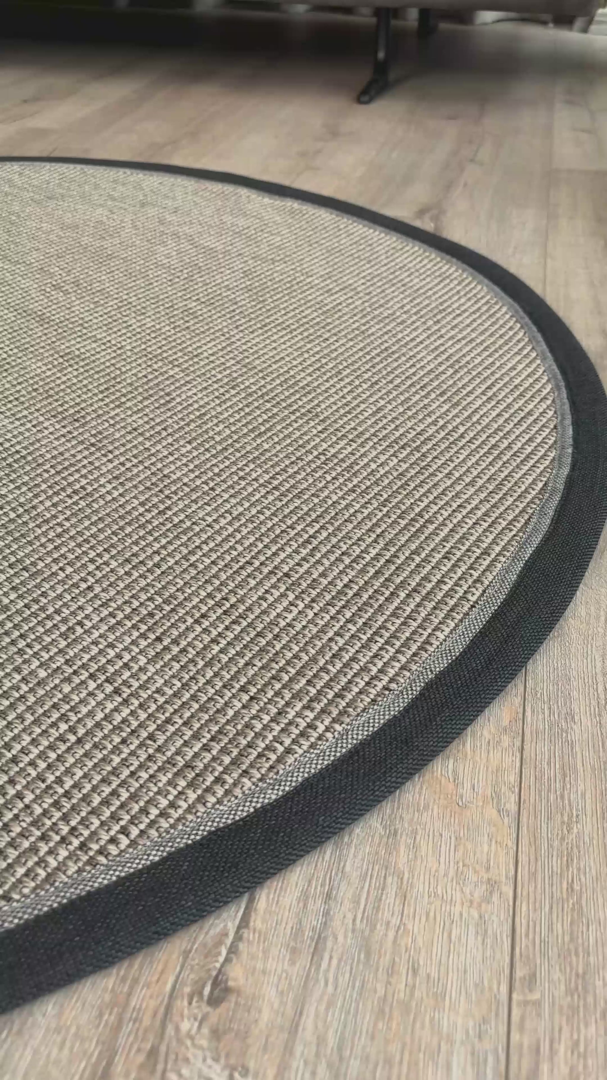 Montana keten çift bordürlü yuvarlak sisal halı, akıcı yuvarlak formu ve güçlü çerçeve detayıyla mekâna dengeli bir kompozisyon kazandırır. Yuvarlak tasarım alanın sert hatlarını yumuşatarak daha doğal ve davetkâr bir atmosfer oluşturur.