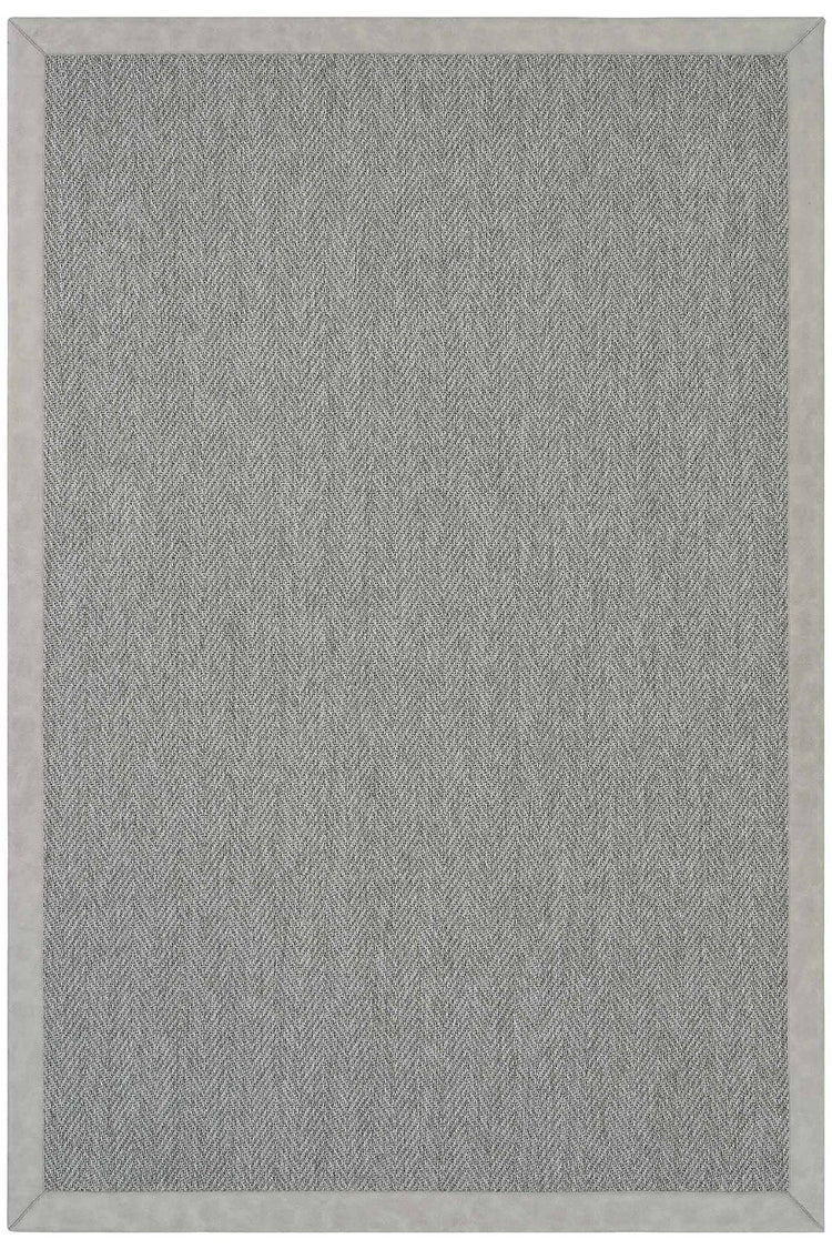 Deri bordürlü Basel sisal halı, gri balık sırtı dokusunu modern ve net bir çerçeveyle tamamlar. Maskülen ve güçlü duruşu sayesinde modern, endüstriyel veya koyu tonlu dekorasyonlarda mekâna karakter katar.